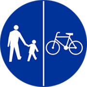 Kiedy na jednej tarczy znaku umieszczono symbole znaków C-16 i C-13, to wskazuje, że droga jest wspólna - przeznaczona zarówno dla pieszych jak i rowerzystów.