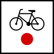 Znak wskazujący początek lub koniec szlaku rowerowego lokalnego.
