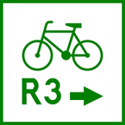 Znak wskazujący zmianę kierunku szlaku rowerowego.
