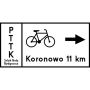 Tablica wskazuje odległość do głównych miejscowości położonych przy szlaku rowerowym lokalnym.