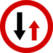 Jeżeli ten znak jest umieszczony przed lewostronnym zwężeniem jezdni, to może zmienić ogólną zasadę pierwszeństwa przejazdu w tej sytuacji. A zatem pomimo wolnej "swojej" połowy jezdni, kierujący pojazdem - w związku z ustawieniem znaku przedstawionym na ilustracji, musi ustąpić pierwszeństwa pojazdom jadącym z przeciwnego kierunku.