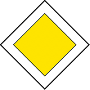 Znak informacyjny „droga z pierwszeństwem” - informuje o początku lub dalszej części drogi, na której kierujący ma pierwszeństwo przejazdu.