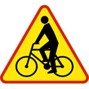 Znak ostrzegawczy „rowerzyści”: ostrzega o miejscu, w którym rowerzyści wjeżdżają na jezdnię lub przez nią przejeżdżają. Jest stawiany na przykład przed miejscem, w którym rowerzyści wyjeżdżają z drogi dla rowerów na jezdnię (ostrzega przede wszystkim kierowców o możliwości pojawienia się na jezdni rowerzysty).