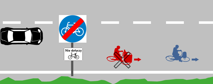 Takie pozornie absurdalne ustawienie oznacza, że zakaz jazdy rowerem dotyczy tyko wózków rowerowych, a nie zwykłych rowerów do 0,9 m szerokości.
