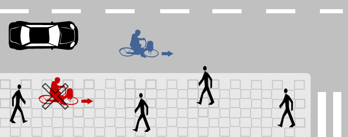Jazda po chodniku jest z zasady zabroniona. Dopuszcza się ją tylko w wyjątkowych sytuacjach, muszą być spełnione trzy warunki: